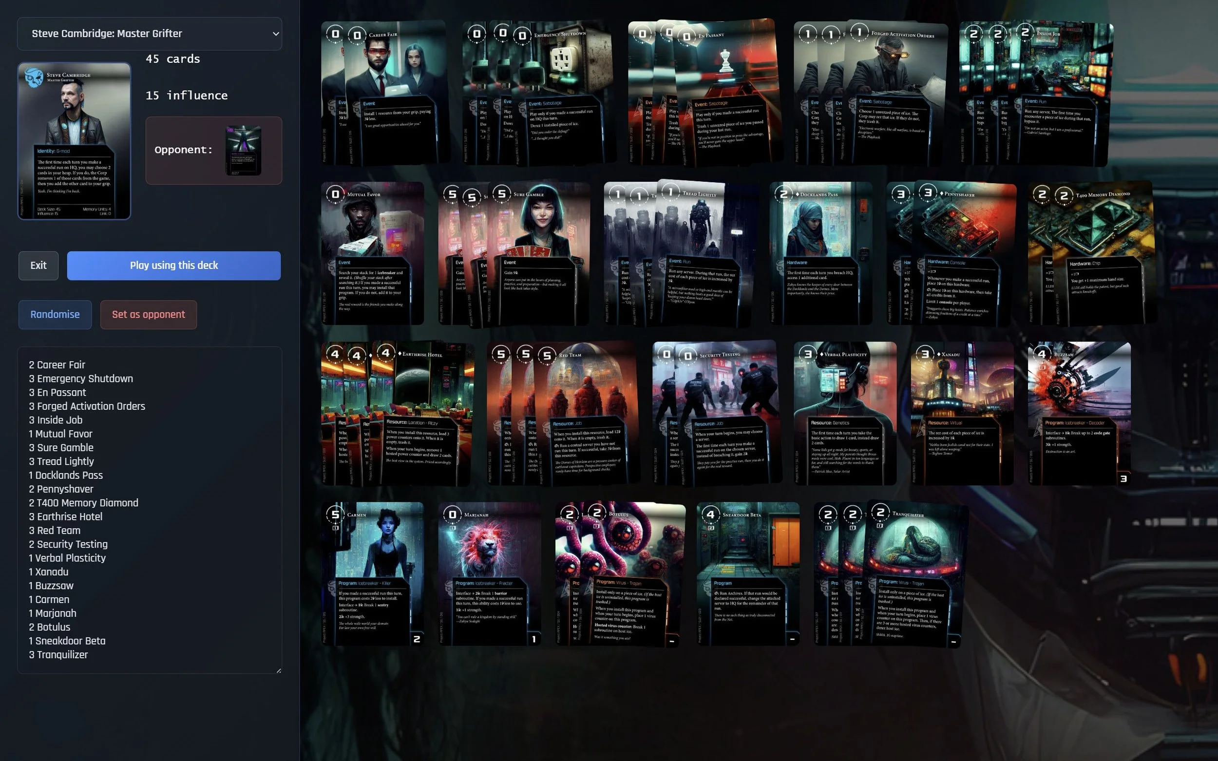 (Also, if you want to get really into Netrunner, I also created a proper front-end for the non-Project Apex card set.)